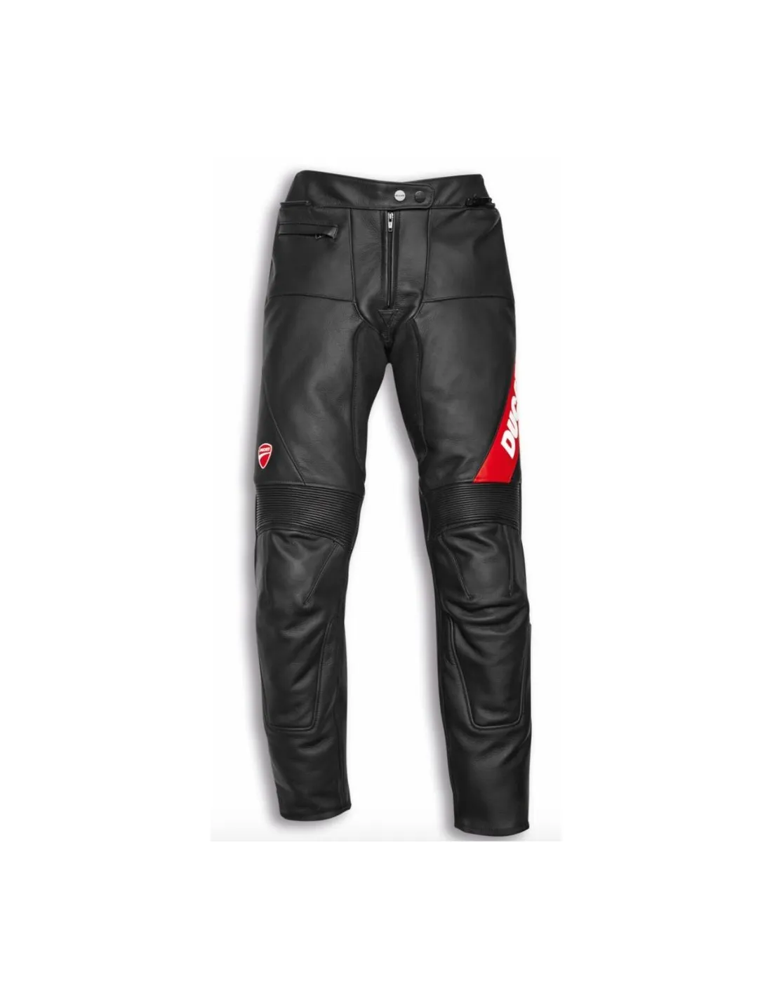 Disfruta cada curva, con los pantalones de cuero Company C4 producidos por Dainese en exclusiva para Ducati y específicamente estudiados para un uso deportivo en carretera. Realizados de cuero vacuno suave y resistente, ofrecen una óptima libertad de movimiento. La seguridad de la prenda, certificada CE, es garantizada por las protecciones en la tibia y la rodilla y por los suaves refuerzos en la zona de la cadera. El forro de Nanofeel® y las aplicaciones elásticas en las rodillas maximizan el confort, mientras que la práctica cremallera permite la combinación con todas las chaquetas de la colección, dándole la máxima versatilidad.