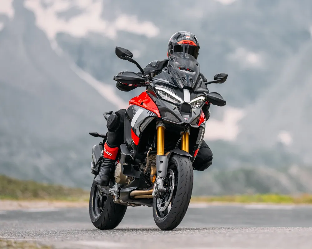 La moto trail más deportiva de Ducati. Está diseñada para llevar la V4 al más puro estilo sport. La posición de conducción dedicada, basculante monobrazo, suspensión Öhlins, nuevo modo de conducción “Race Riding”, ruedas de 17″ y neumáticos deportivos.